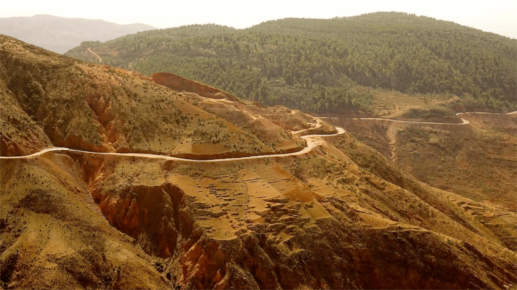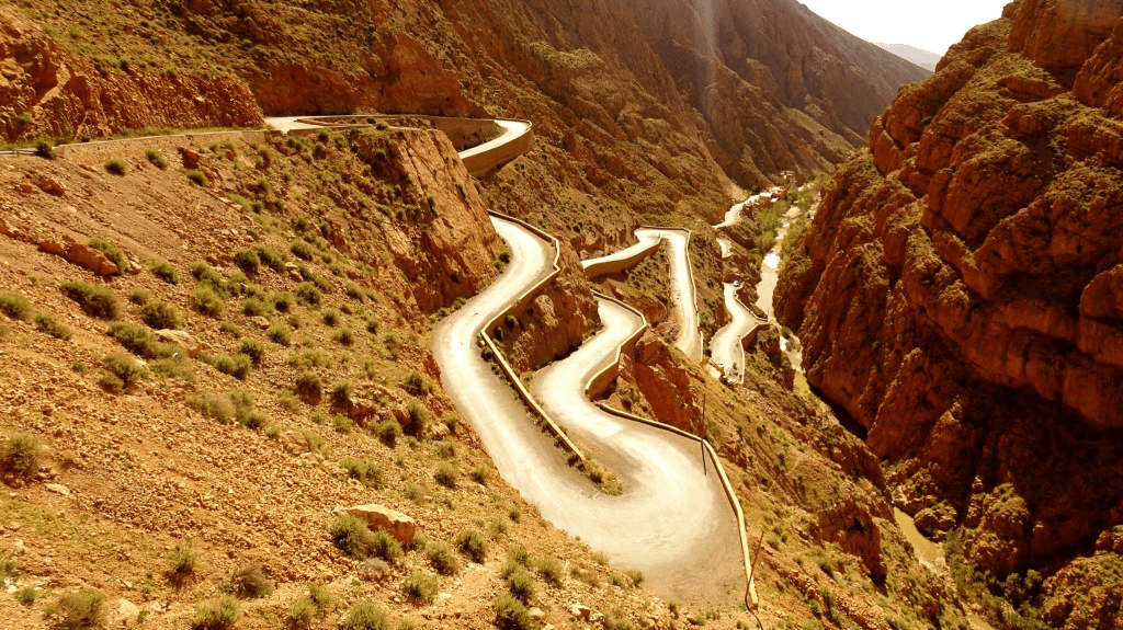 On quitte peu à peu les montagnes, les routes deviennent plus minérales, les paysages s’ouvrent et les couleurs changent. Le vert se fait rare, la roche prend le dessus, puis le sable commence à apparaître. Cette portion du voyage marque une transition forte : on entre doucement dans le Maroc du Sud, plus brut, plus silencieux, presque lunaire par endroits.