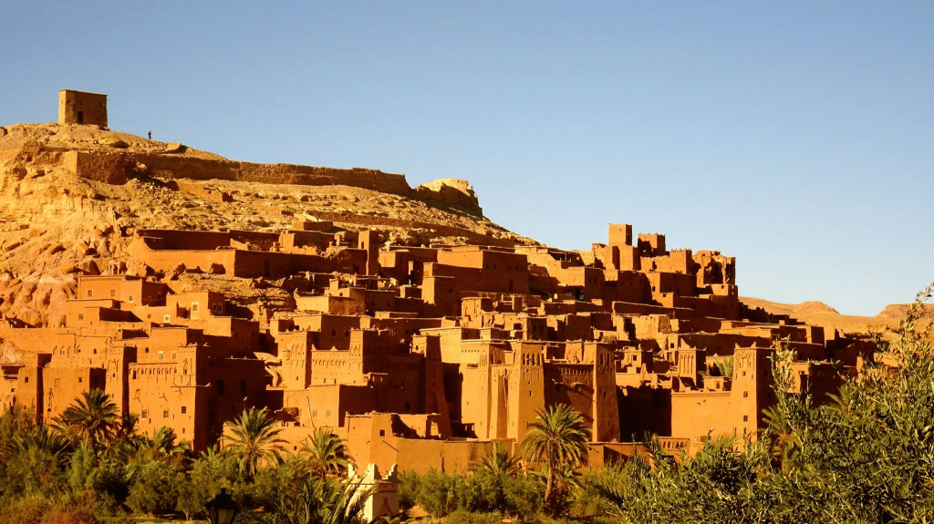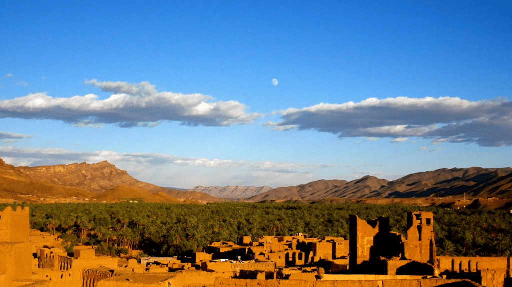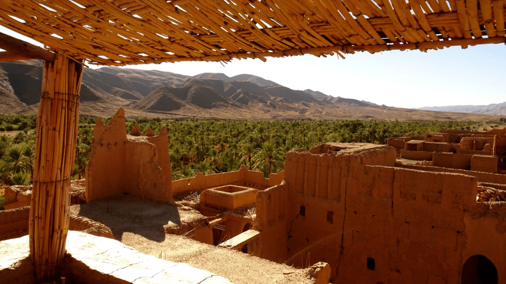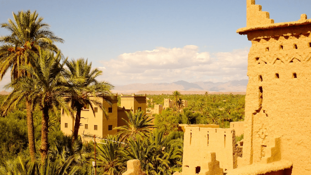 Les maisons d’argile se serrent en terrasses ; du sommet, la kasbah se découpe en silhouettes ocre, découpées par une lumière qui change au fil de la journée. Les artisans, tisserands et peintres, tiennent le lieu vivant : leurs gestes répétés, leurs couleurs chaudes et leurs sourires vous accueillent sans artifice.