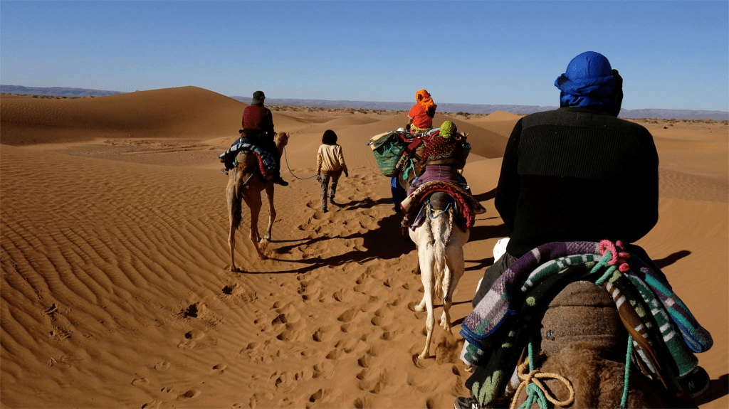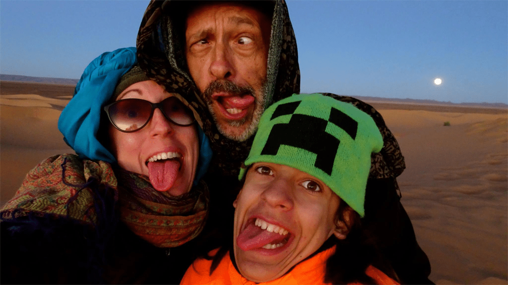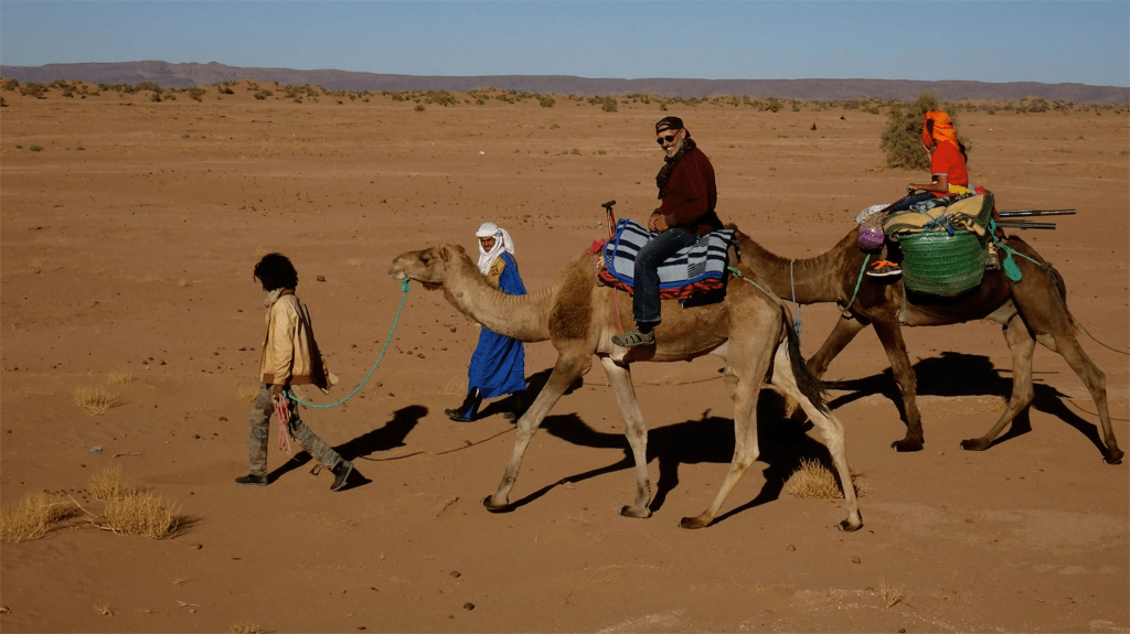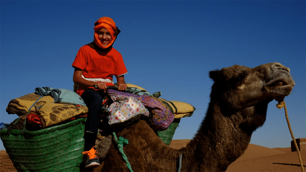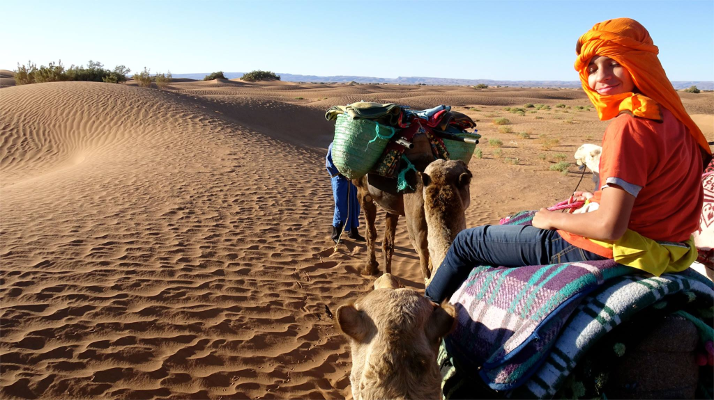 Nos trois chameliers sont d’une gentillesse naturelle, attentifs et souriants. Leur présence rend le moment encore plus humain. Seul petit bémol : maman se révèle allergique aux dromadaires et ne se sent pas très bien — un imprévu qui rappelle que l’aventure reste vivante, parfois imprévisible.
