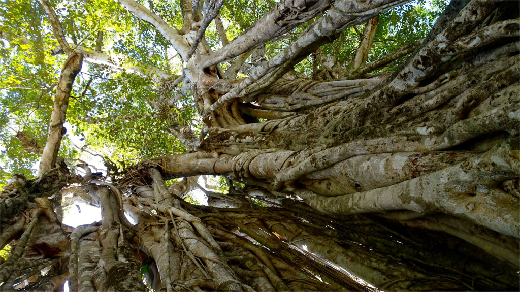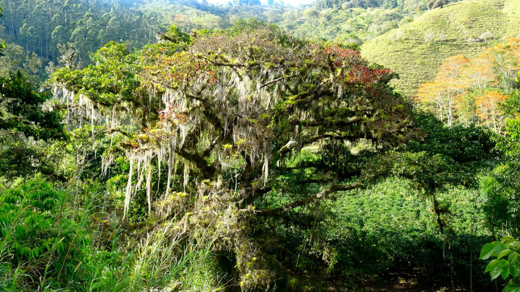 Le HiguerĂłn (Ficus cotinifolia) est un arbre impressionnant, connu pour ses racines aĂ©riennes spectaculaires qui descendent lentement vers le sol et finissent par former de vĂ©ritables colonnes naturelles. Avec le temps, il devient une structure vivante, presque architecturale, oĂč lâarbre semble se soutenir lui-mĂȘme.