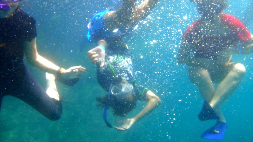 Lâeau est agrĂ©able et, quand les conditions le permettent, on peut faire un peu de snorkel đ€ż