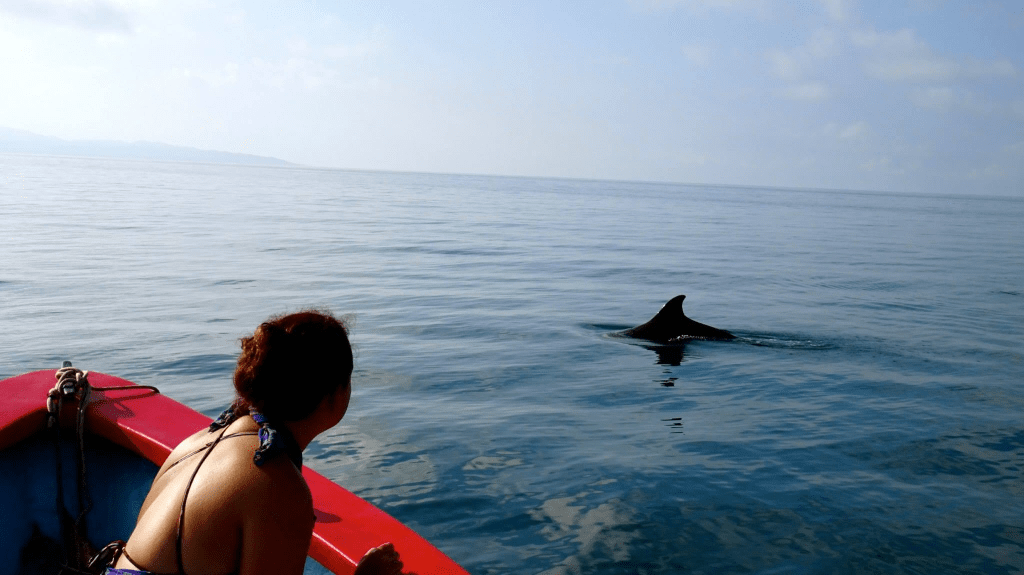 Ils nagent à cÎté du bateau, jouent dans le sillage, semblent presque nous accompagner.